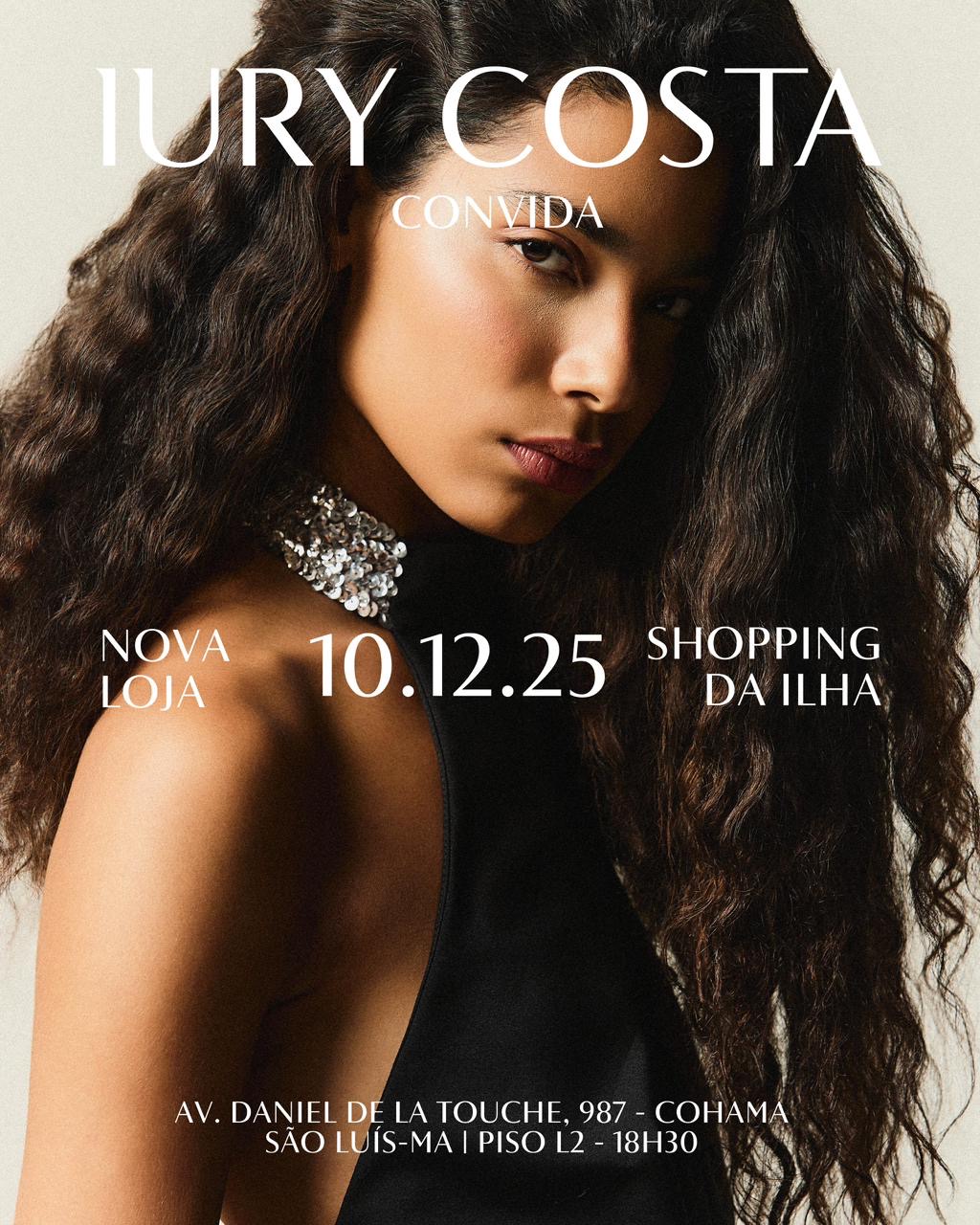 A consagrada marca de moda IURY COSTA chega oficialmente a São Luís no dia 10.12, com um coquetel exclusivo ás 18h30 no Piso L2 no Shopping da Ilha. O evento será restrito para convidados e imprensa, marcando a estreia da grife na capital maranhense.