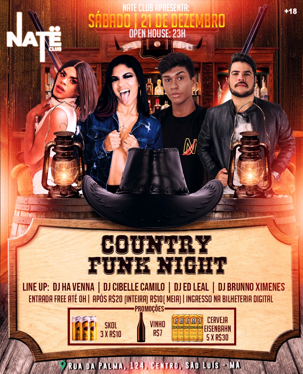 Sábado, 21 de dezembro é dia de funk na Country Funk Night. Venha se divertir a noite inteira com 4 DJ’s que prometem agitar e