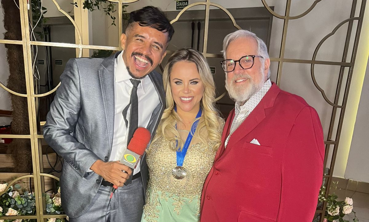 William Santos e o seu troféu com certificado na capital paulistaMais uma homenagem no currículo do colunista social do Jornal O Debate e apresentador do