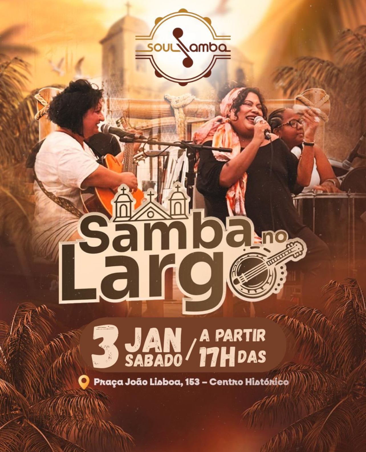 O Samba no Largo é mais que um evento. É um convite para ocupar a cidade, valorizar a cultura e curtir o melhor da nossa ilha em um dos cenários mais lindos do Centro Histórico.
