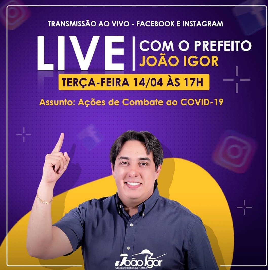 O Prefeito João Igor (MDB) realiza nesta terça-feira dia 14.04 às 17h uma live em São Bernado-MA sobre às ações do Combate ao Covid 19.