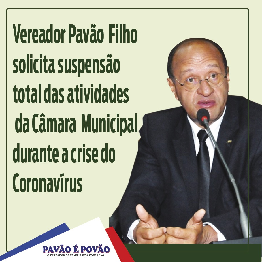 Vereador Pavão Filho propõe ao Presidente Osmar Filho em regime de urgência a suspensão total das atividades da Câmara Municipal de São Luís, em virtude da pandemia que tem se agravado em nossa cidade. A medida visa garantir a segurança de todos os funcionários do Poder Legislativo e também da